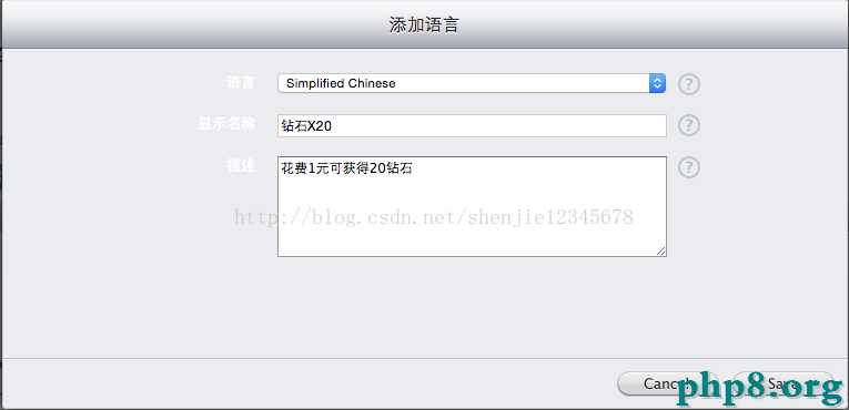 最後一步就是點擊“選取文件”提交一張蘋果它指定像素(640*920)的商品圖片,當他上傳終了後點擊“save”按鈕,我們這第二局部就大工告成了。提交的商品最後會在內購的頁面上顯示為如圖: