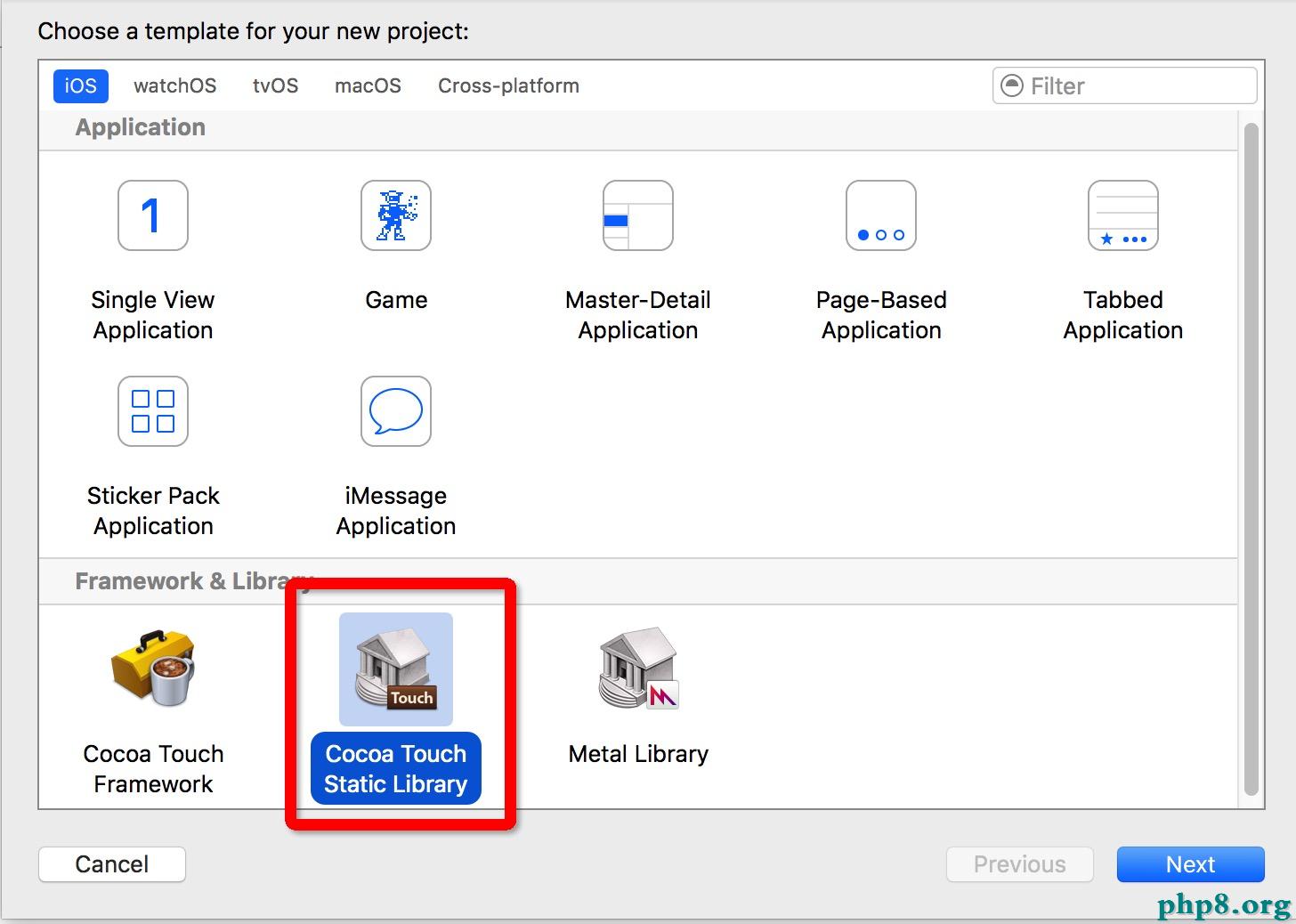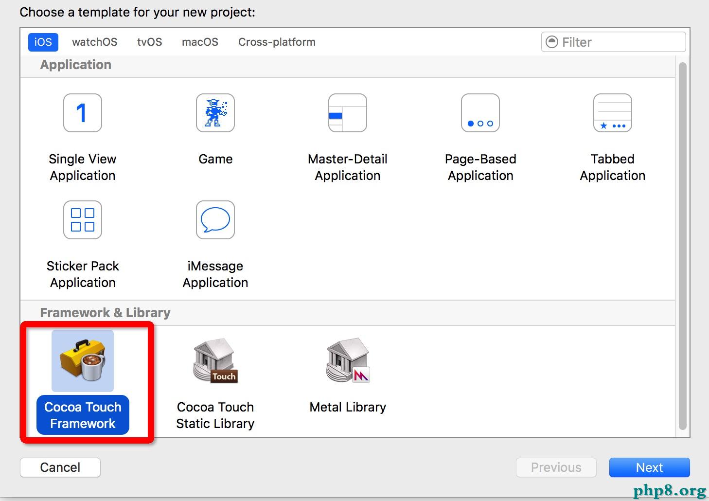 1、仍然Xcode創立一個新的工程FrameworkeLib,選擇工程如下: