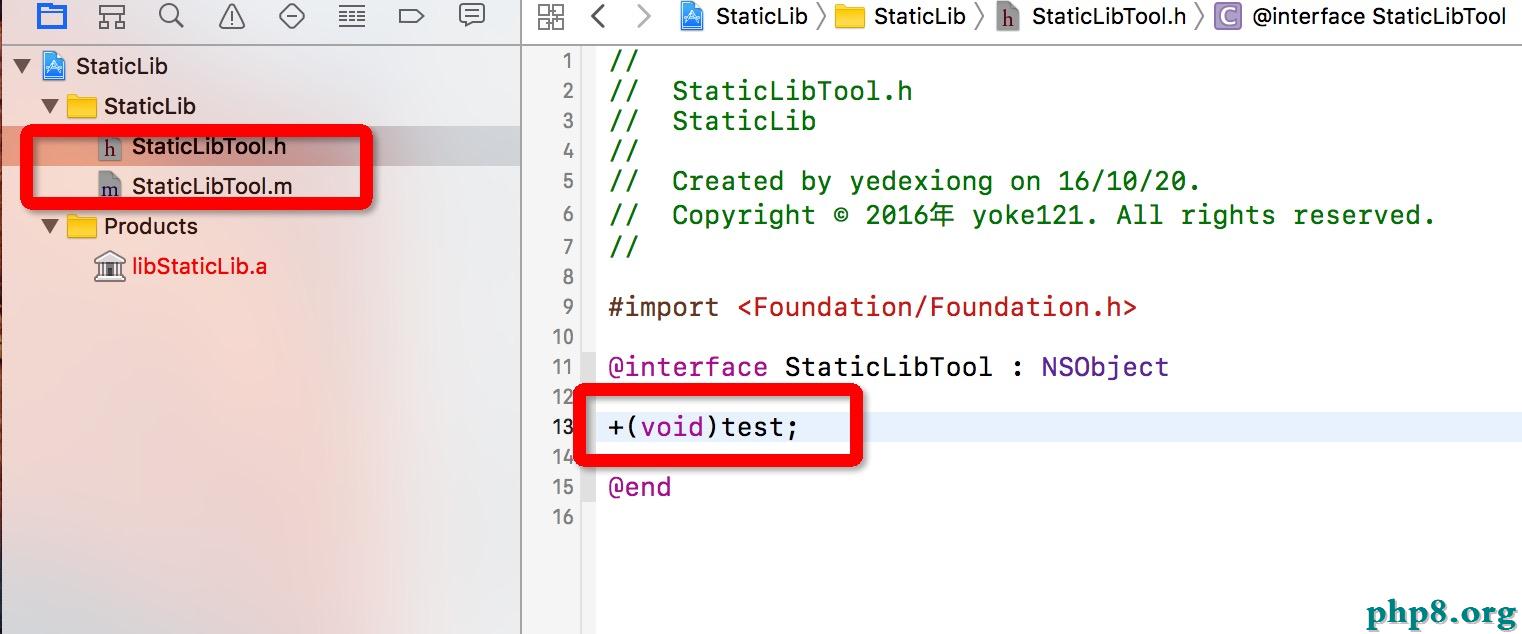 2、創立需求測試的類,為了方便我把上述打包.a的測試類StaticLibTool直接拖來運用。