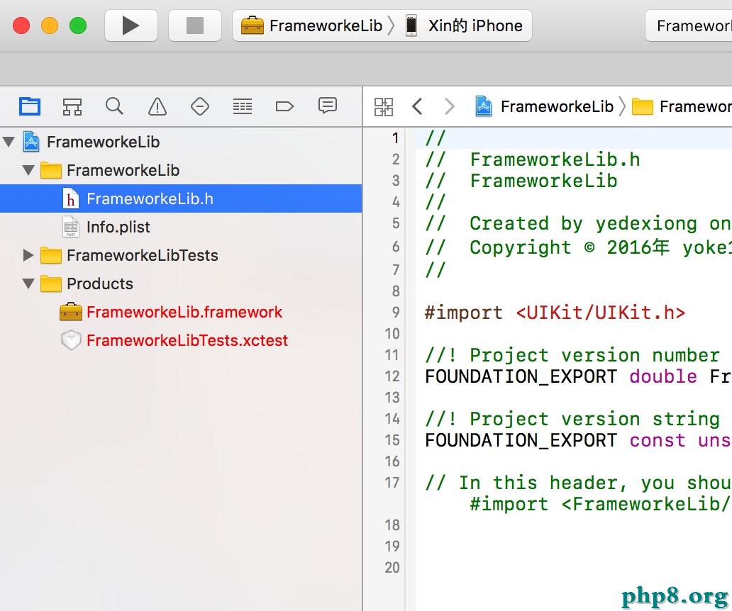 創立完成後我們可以看到,工程自身自帶一個FrameworkeLib.h文件,這是相似一個主頭文件一樣的東西