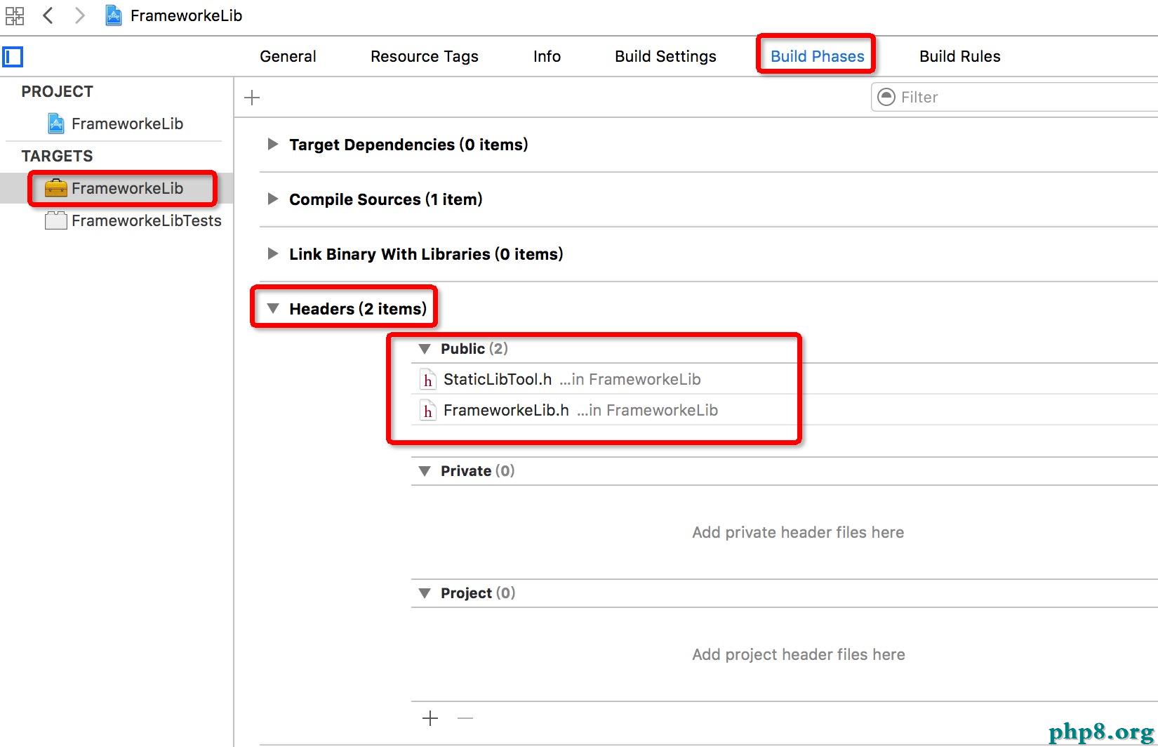 target-Build Phases - Headers -把需求地下的頭文件從project拖入Public