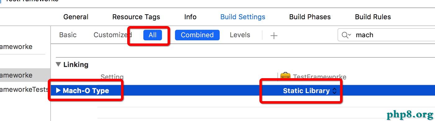 target->BuildSetting ->搜索關鍵字mach->Mach-o Type 設為Static Library(這個默許選項是靜態的)