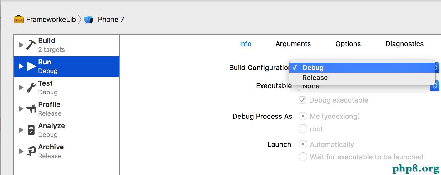 product -> scheme -> Edit scheme -> Run->選擇Debug或Release