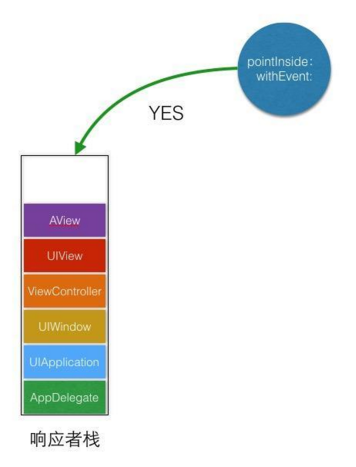 不只如斯,從下面輸入的nextResponder來看,一切的呼應者都是在查找中前往可呼應點擊的視圖。是以,我們可以推想出UIApplication對象保護著本身的一個呼應者棧,當pointInSide: withEvent:前往yes的時刻,呼應者入棧。