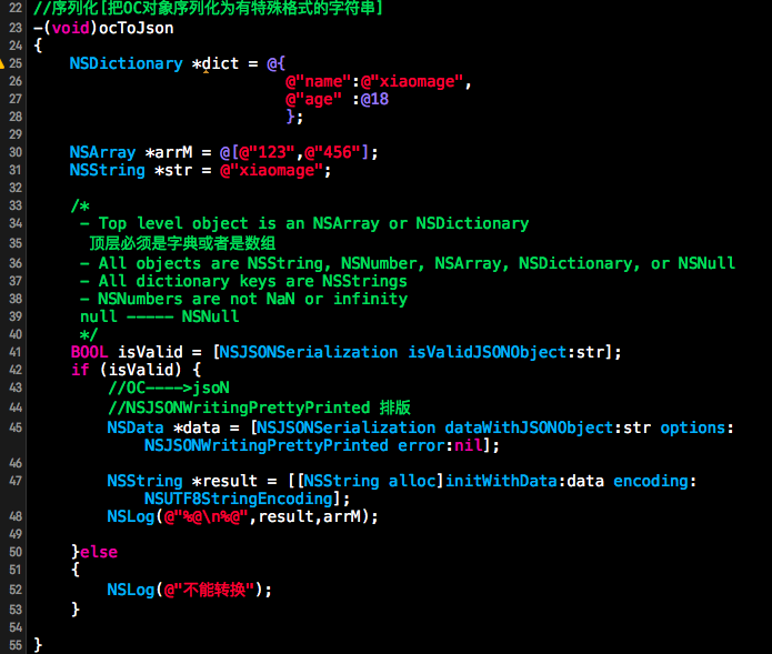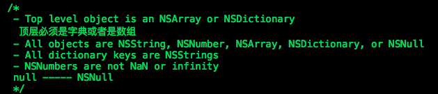 序列化(OC對象 --> JSON),留意字典的值不克不及傳nil,然則可以傳[NSNull null]