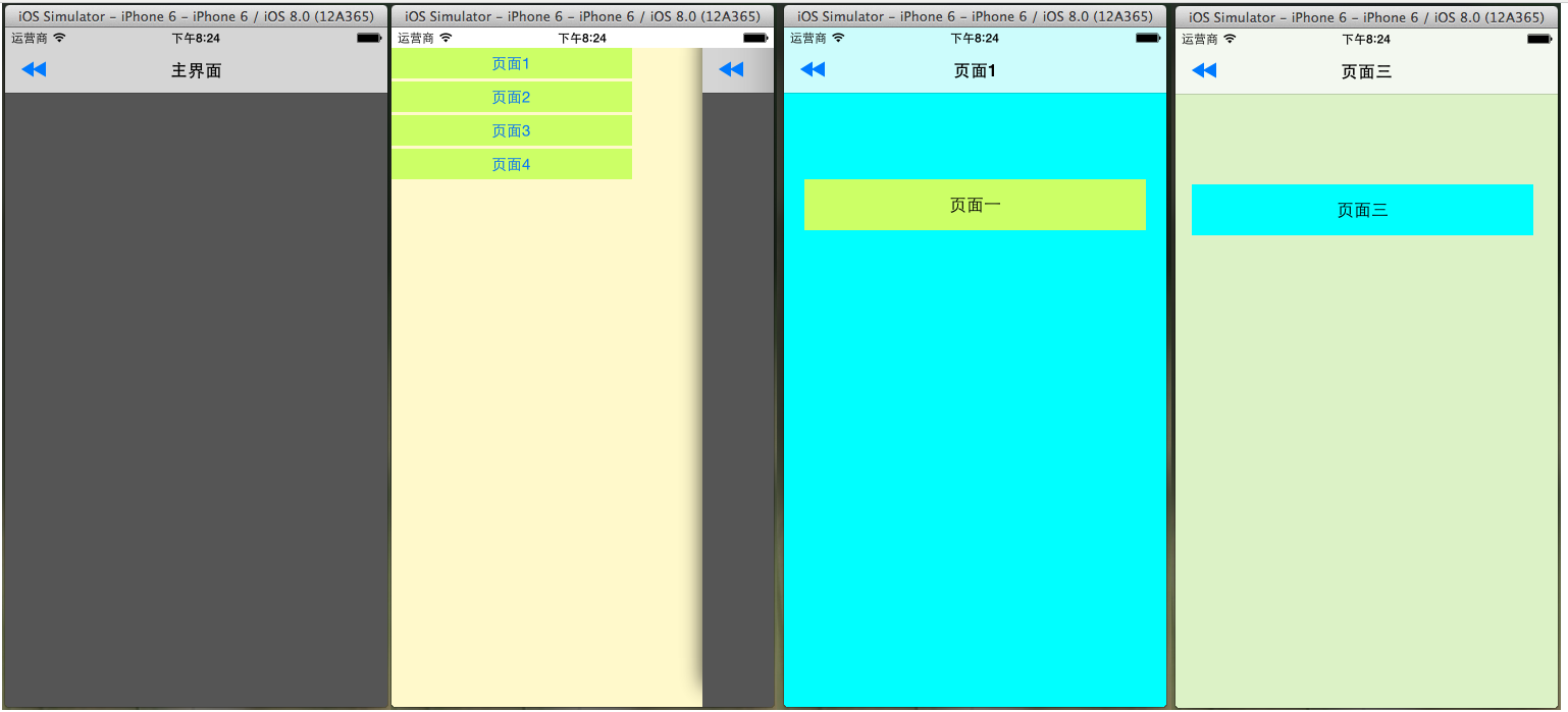 4.在導航頁點擊分歧的按鈕應用PPRevealSideViewController跳轉到分歧的controller