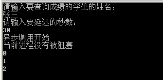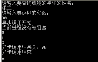 由於我們輸出的照樣30秒,所以我們要比及30秒後能力輸入“異步驟用成果為:90”這句話,這是誰也轉變不了的,然則和同步驟用分歧的地方在於,“以後過程沒有被壅塞”和for輪回立刻就輸入了,所以證實你在延遲30秒的時刻,我持續履行我上面的代碼,你延遲你的我不論,我不等你,等你到猴年馬月了,我持續做我的工作