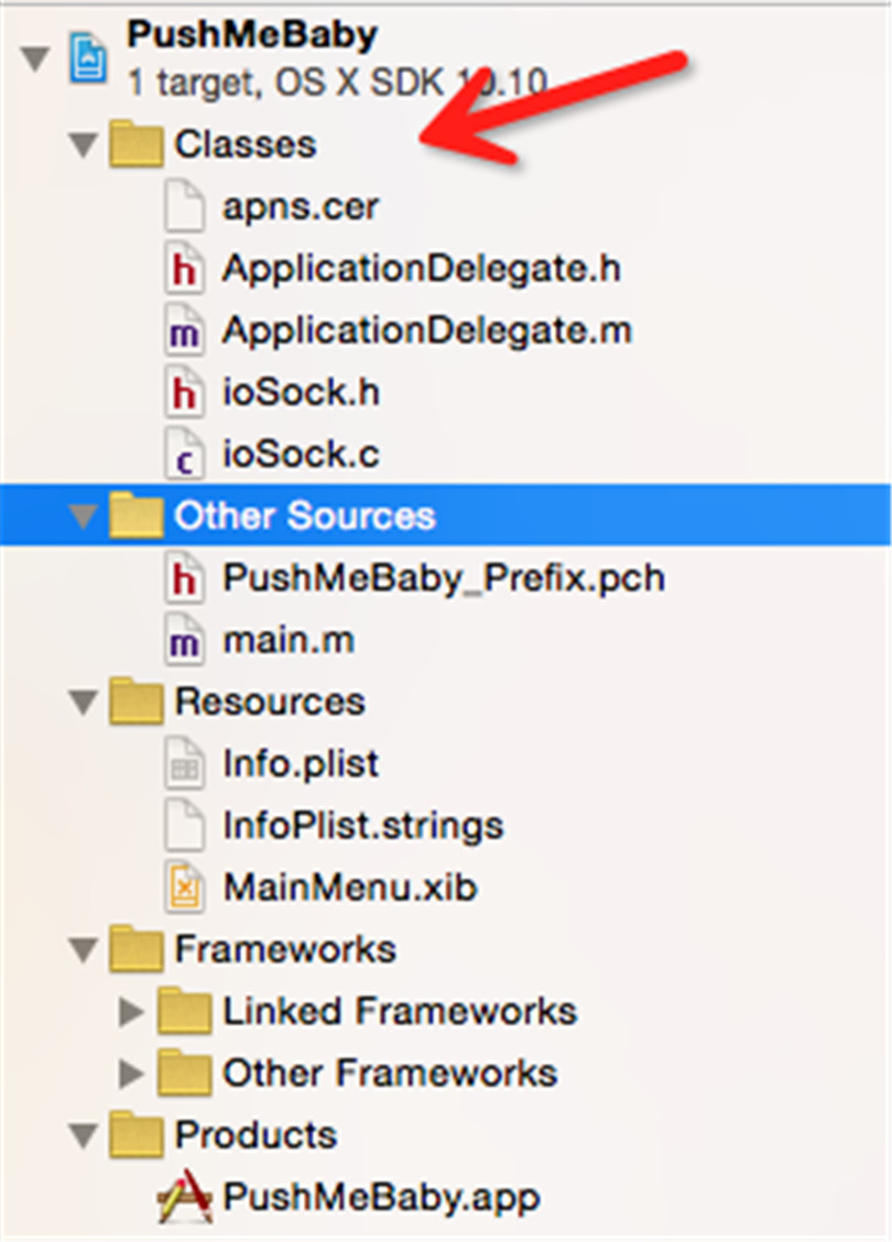 將我們的推送證書添加到項目目次