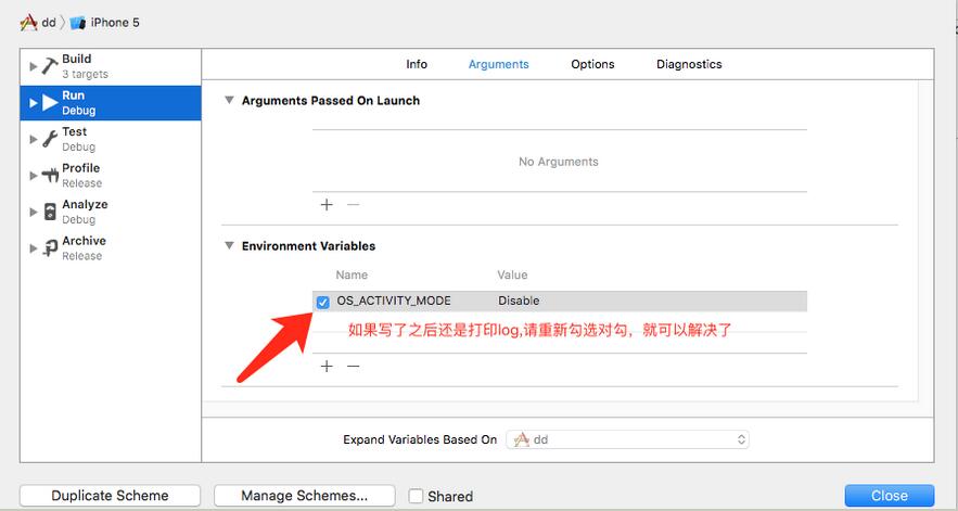 Xcode8裡邊 Edit Scheme-> Run -> Arguments, 在Environment Variables裡邊添加