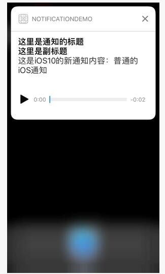 須要留意,UNNotificationContent的附件數組固然是一個數組,然則體系的告訴模板只能展現個中的第一個附件,設置多個附件也不會有額定的後果,然則假如開辟者停止告訴模板UI的自界說,則此數組便可以派上用處了。音頻附件界面以下: