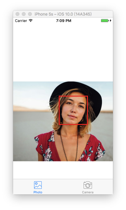 再次運行app,應該會看到人的面部周圍會有一個框。OK,你已經成功使用Core Image識別出了人臉。