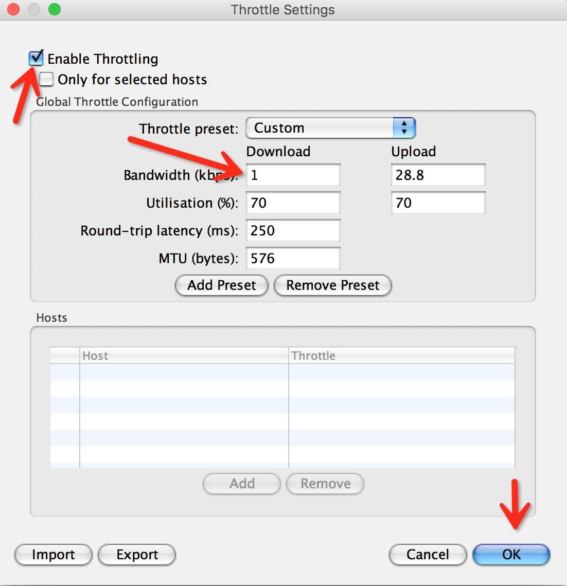 設置好之後千萬要記得去勾選Throttling,不然沒有效果