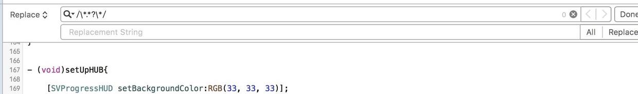 當項目一個類裡面有幾千行代碼的時候,想要快速刪除或者替換掉有規律的代碼,這樣的話可以采用如下方法。