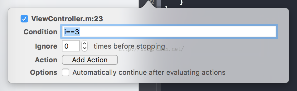 同時也可以設置Ignore參數,會忽略前面n次的斷點運行,會在第n+1次中斷。