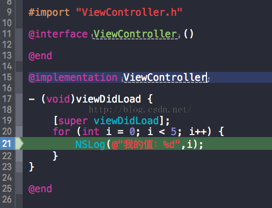 NSLog(@"我的值:%d",i);