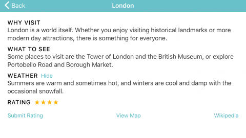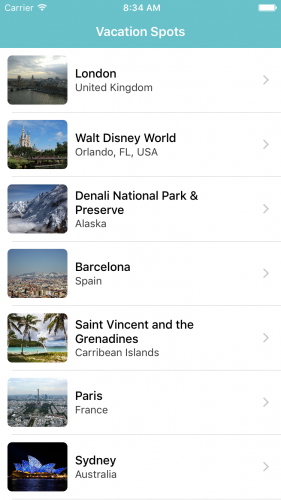 在本教程,你將創建一個名為Vacation Spots的App。這個App非常簡單,僅僅顯示了一個能讓你原離一切塵囂的景點列表。