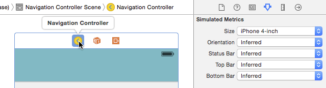 Size類仍然可用,但在初始導航控制器的屬性面板中,Simulated Metrics下的Size屬性卻被設置成了iPhone 4-inch。這僅僅是為了讓我們更容易使用故事板一點,Simulated Metrics屬性在運行時並沒有任何影響——不同設備上視圖的大小仍然會自動改變。