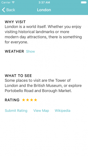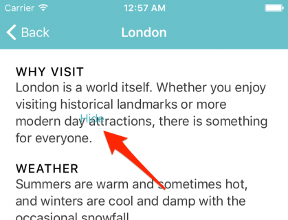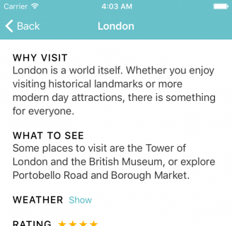 如果你想在運行App時看見這些顏色,你可以在SpotInfoViewController的viewDidLoad()方法中將下列語句注釋。當然現在,還不需要這樣做: