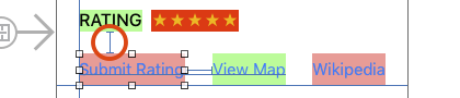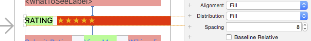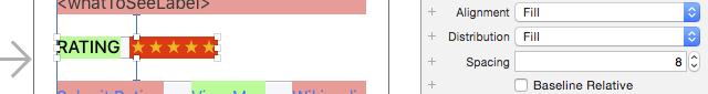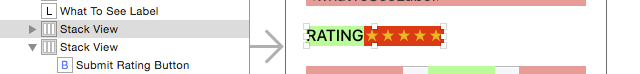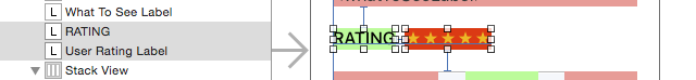 Rating版塊就在前面創建的Stack View上方,選取RATING標簽,以及旁邊的顯示為幾個星形圖標的標簽: