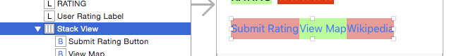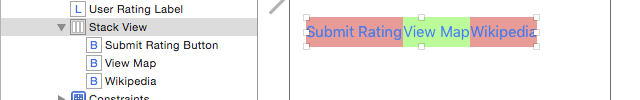 現在Stack View的尺寸正確了,但它會拉伸第一個按鈕的大小使其填充所有剩余空間: