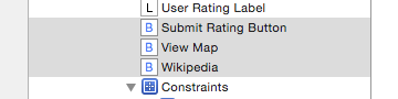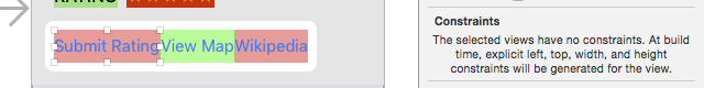 當你將View添加到Stack View中時,任何相對於其他視圖的約束都被刪除。以之前添加的按鈕為例,Submit Rating按鈕上方有一個相對於Rating標簽底部的垂直間距約束: