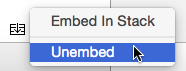 首先,選定想解散的Stack View。按下Option鍵,點擊Stack 按鈕。這將彈出一個上下文菜單,然後點擊Unembed: