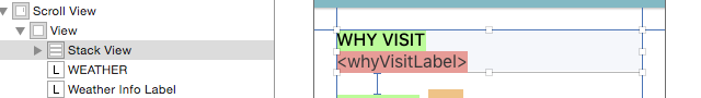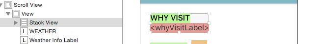 垂直的Stack View接下來,你將創建一個垂直的Stack View。選中WHY VISIT標簽及下面的標簽: