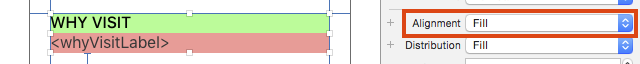 將Alignment設置為Fill,表示所有View將沿與Stack View軸向垂直的方向進行全占式分布。這會讓WHY VISIT標簽擴展它的寬度到100%.