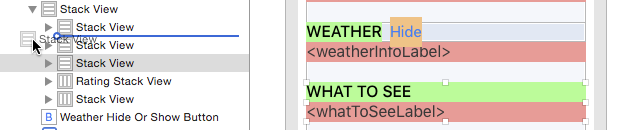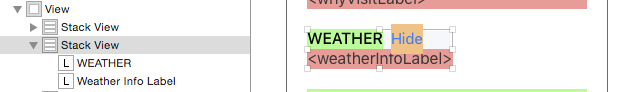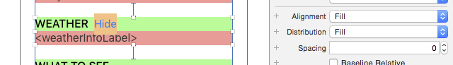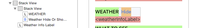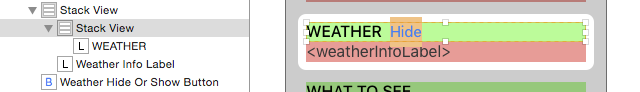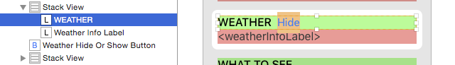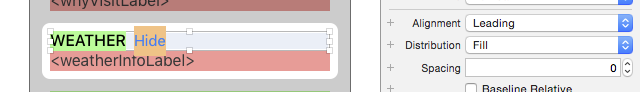一種方法是使用嵌套的Stack View,先將WEATHER標簽和Hide按鈕嵌到一個水平StackView,再將這個Stack View和標簽嵌到一個垂直Stack View。