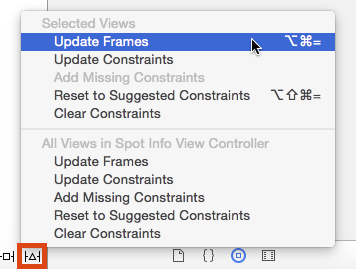 幸運的是,將已有的View添加到一個新的Stack View中並不是一件多復雜的事情。首先,用Command+左鍵同時選中Spot Info View Controller底下一排的所有按鈕: