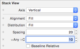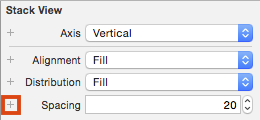 選擇頂層 Stack View,點擊 Spacing 前面的 + 按鈕: