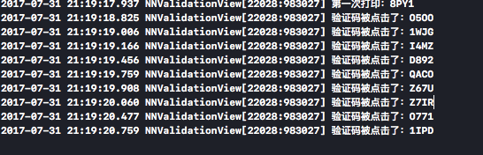 NSLog(@"驗證碼被點擊了:%@", weakSelf.testView.charString);