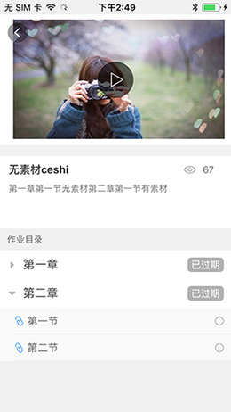 這裡采用UITableViewStylePlain樣式,chapterDtoList對應章,subChapterList對應節。章的話我們使用headerView來做,節的話我們使用cell來做。然後只需要給headerView添加一個點擊手勢,點擊的時候給對應的模型添加標識,從而去控制章節的收合。