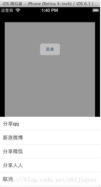 這個菜單你可以任意自定義,我這裡是一個tableView,你可以寫一些有圖和文字的添加上去。只需要把源代碼稍改,就ok!