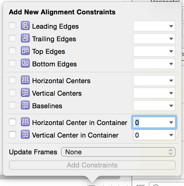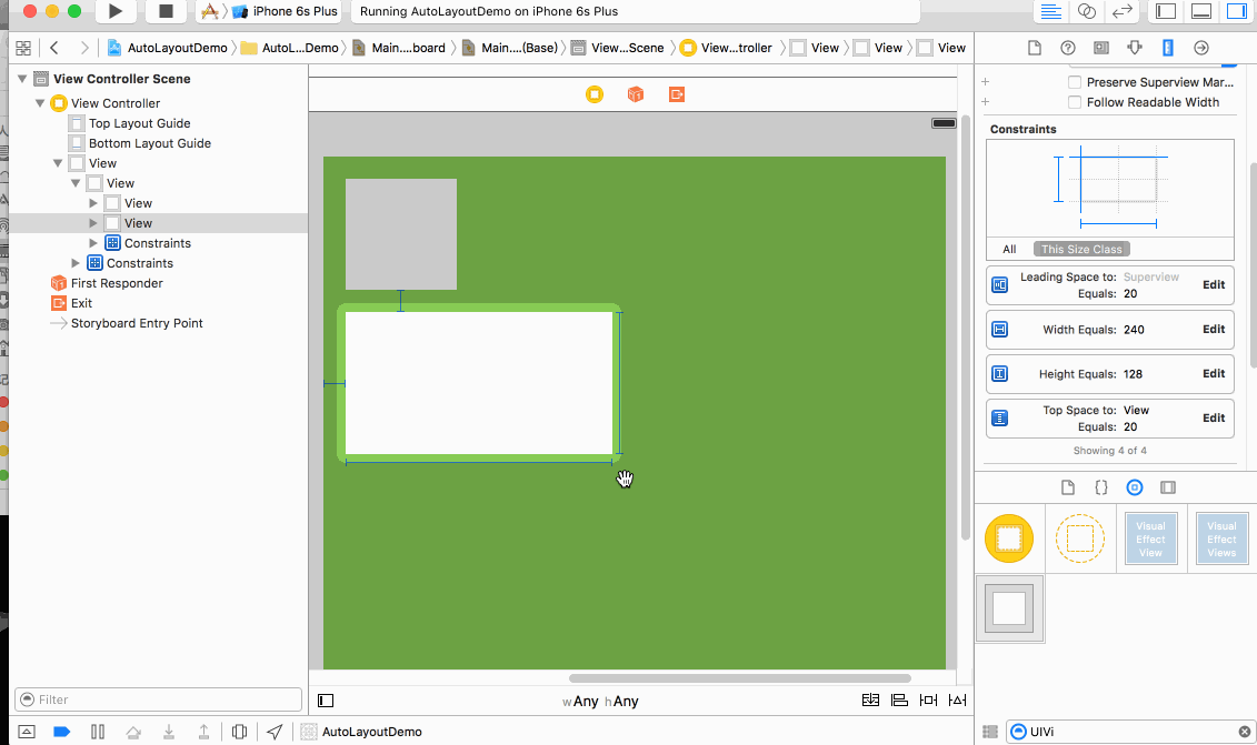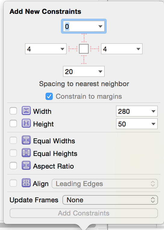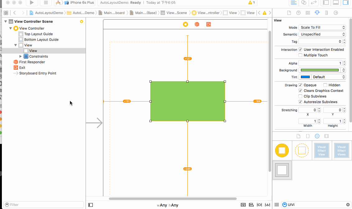注意我在添加約束的時候有個選項叫做updateFrame 如果勾選 會直接將Frame調整到真實值 ,而不需要再次update 。