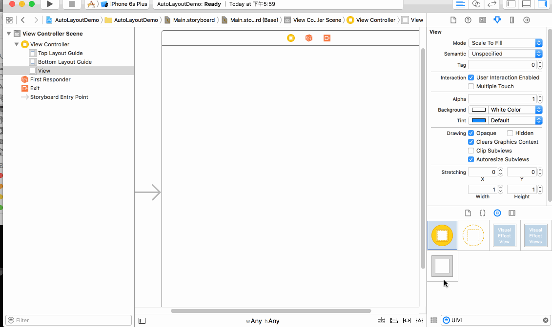 自從Xcode6之後 你會看到我們新建一個Single Application 會發現一個ViewController的View非常大 ,跟任何一個iPhone iPad的尺寸都不一樣 ,這些都是 假象 假象 假象 Apple 把尺寸抽象為了一個正方形 到真正的設備上才是真正的布局