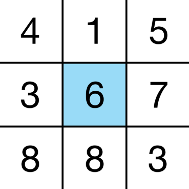 模糊算法通常會檢索圖片的每一個像素點並基於它周圍的像素點來計算該像素在模糊後的灰度值。比如,我們想象一張如下所示網格圖: