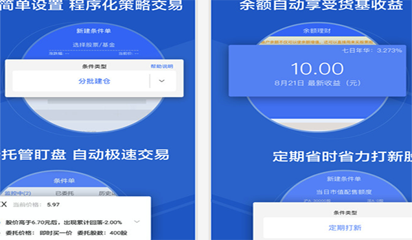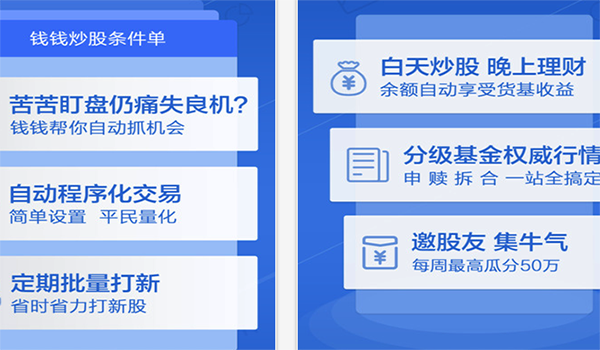 錢錢炒股是華寶證券創新出品的智能炒股工具!除了權威行情、股票開戶、普通交易、社交等功能外,更有條件單策略交易、定期打新、余額理財等智能交易功能!錢錢炒股力求將智能交易做到極致,讓投資者可以輕輕松松炒好股票!