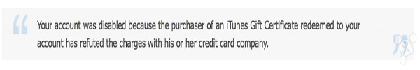 淘寶上有很多賣家,以出賣 Gift Card 的名義來賣黑戶,既黑賬號,屬於一種盜竊行為,當你慶幸於用很少的錢買了軟件之後,肯定會有個受到損害的人在為你付賬,當受害人向蘋果公司投訴,然後你的號就被封了。