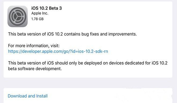 如果你之前有安裝舊版本的 iOS 10.2 beta 系統,你同樣可以通過蘋果開發者中心直接下載 iOS 10.2 beta 3,目前來看 iOS 10.2 beta 3 依然還是以補充和修復為主。