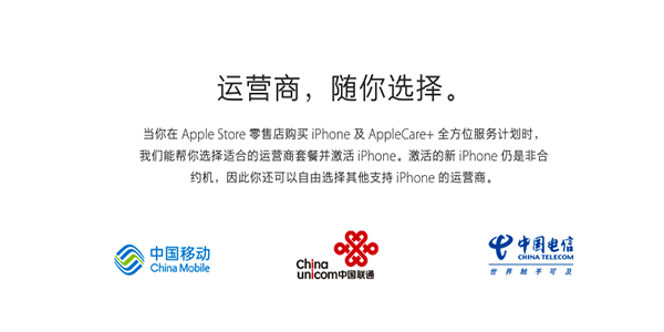 當你在 Apple Store 零售店購買 iPhone 及 AppleCare+ 全方位服務計劃時,我們能幫你選擇適合的運營商套餐並激活 iPhone。激活的新 iPhone 仍是非合約機,因此你還可以自由選擇其他支持 iPhone 的運營商。