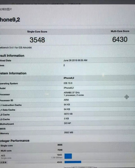 說蘋果從不來不過分強調iPhone的性能提升,但每次新機出來後,實際效果都表現異常搶眼,這次應該也不例外。現在,有網友放出了所謂iPhone 7的性能跑分,首先可以看出,該機的代號為iPhone9,2,作為對比,iPhone8,2、iPhone8,1分別是iPhone 6S和iPhone 6S Plus。蘋果7配3G內存跑分性能怎麼樣?蘋果7配3G內存跑分性能無敵,不信請看!