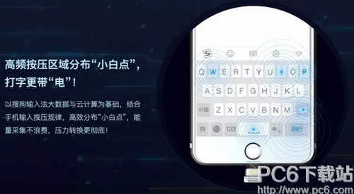 搜狗膜膜打手機充電膜通過高系數壓電納米材料采集來自手機按摩、按壓等產生的能量。同時利用混合電力放大器,完成電力傳輸任務,內置的混合放大元件,將小壓力轉變成大電力。而且用戶在使用搜狗輸入法時,搜狗膜膜打的能量轉換達到最大。