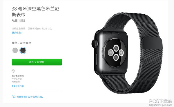 在推出黑色版本的不銹鋼材質標准版 Apple Watch 之後,蘋果在今天上架了深空黑色的米蘭尼斯表帶,使得這款新表帶與之前推出的黑色標准版 Apple Watch 的搭配更加協調。比之前銀色版本米蘭尼斯表帶的售價貴了 400 元,黑色版本的米蘭尼斯表帶 38mm 與 42 mm 版本的售價均為 1558 元人民幣,如果你更喜歡深色調且商務范十足的 Apple Watch,黑色標准版 Apple Watch 配深空黑色米蘭尼斯表帶將是個不錯的選擇。