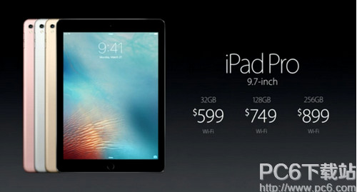 價格方面,9.7英寸iPad Pro 32GB WiFi版本售價599美元(約合3884人民幣);128GB WiFi版本售價749美元(約合4854元人民幣);此外蘋果還首次推出了256GB WiFi版本售價899美元(約合5826元人民幣)。3月24開始預訂,3月31日正式開售,首發地區包含中國大陸。