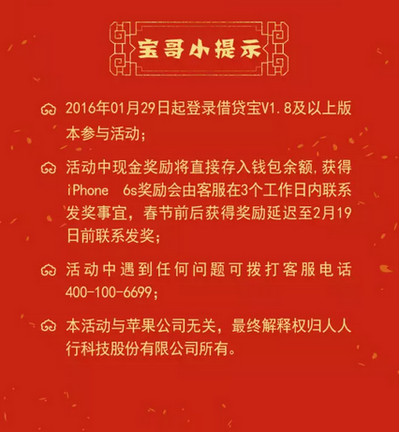 借貸寶天降奇財活動時間:2016年1月29日起