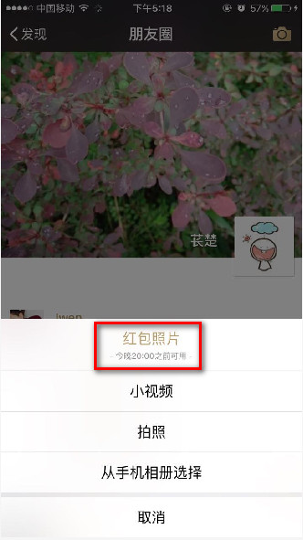 微信紅包照片怎麼玩 微信紅包照片在哪兒。微信紅包照片這是微信最新出的一個好玩的小功能,截止到 2016 年 1.26 日 20:00 之前,朋友們都可以在朋友圈點右上角的“相機”然後發送“紅包照片,就可以開始發送“紅包照片”咯。