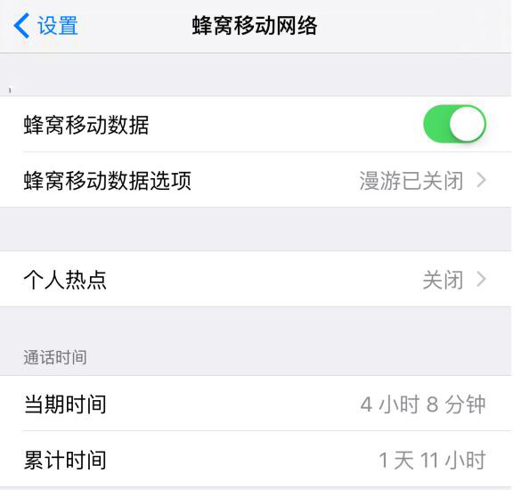 4、蜂窩數據選項做了修改。