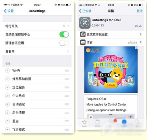2、Ccsettings ios8版本的可以用,但進入後台關閉進程會安全模式