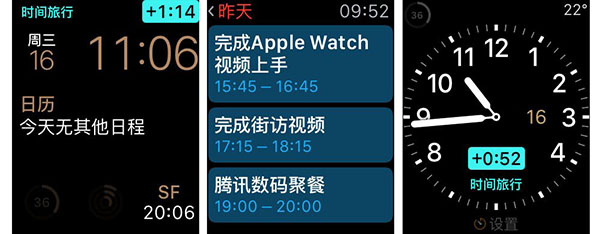 可能在一代系統的時候,很多人戴了一段Apple Watch發現並沒有那麼強的需求,但是在二代系統升級的時候,蘋果顯然賦予這款手表更多的時間方面的功能,時間旅行就是這方面的一個例子。
